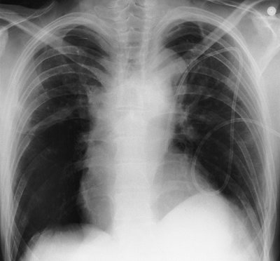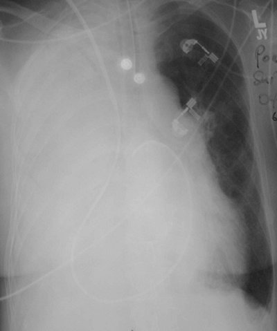FIGURE 5-13. Hemothorax as a complication of pulmonary artery catheter placement.