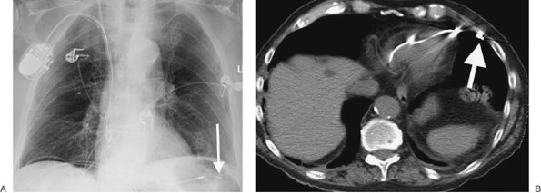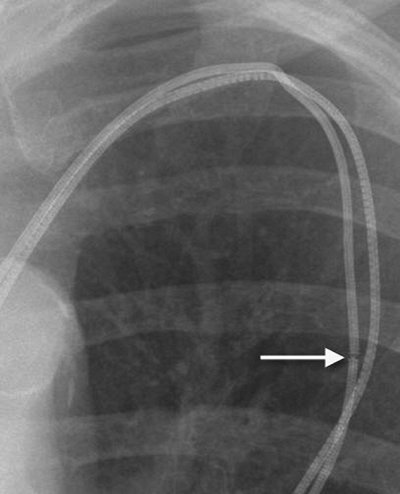 FIGURE 5-32. Nasogastric tube placement in the lung.