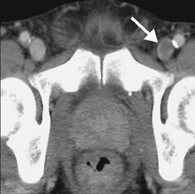 periarterial abnormalities (lymph node enlargement or infiltration of