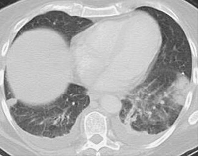 opacities can represent a combination of pulmonary hemorrhage and